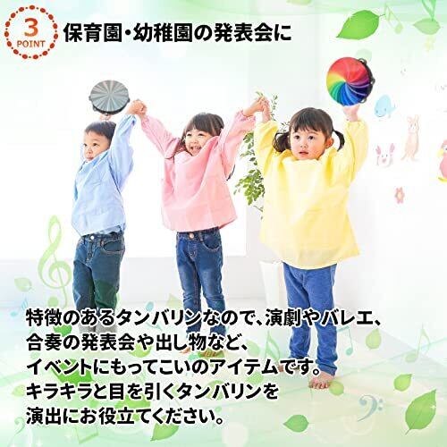 【キラキラ反射するユニークなタンバリン】角度によって色が変わるユニークなタンバリンです。サイズも 8インチ(20センチ)と、子供でも扱いやすいミニ サイズとなっております。 【興味津々で楽しく叩ける】キラキラと反射して、色が変わるので目を引くタンバリンです。小さなお子様も興味津々、楽しく遊びながら楽器に触れられ、リズム感や音楽センスが育ちます。 【保育園・幼稚園の発表会に】特徴のあるタンバリンなので、演劇やバレエ、合奏の発表会や出し物など、イベントにもってこいのアイテムです。キラキラと目を引くタンバリンを演出にお役立てください。 【お子さん・お孫さんへのプレゼントにも最適】子供でも扱いやすいミニサイズとなっております。入園・入学のお祝い、誕生日プレゼントにも最適です。 【サイズ・カラー】サイズ:直径20cm 高さ5.5cm カラー:シルバー/レインボー/花火/ゴールド
