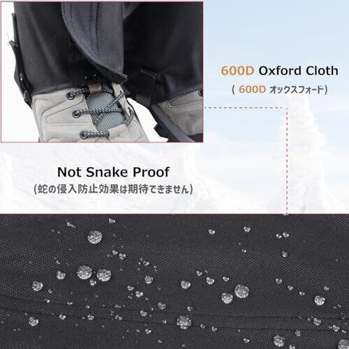 ✅【サイズ】- ふくらはぎ周り × 全長 × 履口周り × 足首周り。S - 32.5 × 37 × 38 × 37 / M - 36×38×41×40 / L - 40 × 41 × 45 × 44 / XL - 45 × 42 × 48 × 47(cm)。画像02はサイズチャートです、ご参考お願いいたします ✅【防水性】- ロングゲイターは600Dオックスフォード生地で、軽量で裂けにくいです。表地は撥水加工を施しており、 耐水圧6000mmになります ✅【足カバー】- 登山スパッツは膝下から足首までをカバーして、露や雨、泥跳ねからガードします。晴れた日でも砂や小石などが靴の中へ入るのを防ぎます ✅【二重固定】- ゲイターの底部は金属フック付き、靴ひもに引っ掛けて、ずり上がり防止します。バックルで緩まないようにしっかり締めますので使用安心です ✅【簡単着用】- マジックテープが付いて簡単に装着できます。TPUベルトを外側から靴底にまわし、バックルで締めると完成です。お釣り、芝刈り、砂利道・悪路、雪山での歩行などご活用いただけます