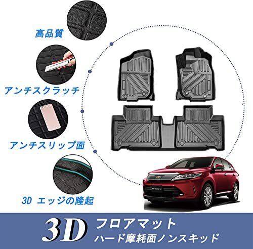 トヨタ ハリアー 60系 3Dフロアマット HARRIER 60系 ASU/AVU/ZSU6# H25.12~R2.5 立体フロアマット オートマ用 前席& 2列目 TPE素材 カスタムパーツ 防水 滑り防止 耐汚れ 消臭/抗菌効果 車種専用設計 取付簡単 保護パーツ カー用品 3PCS