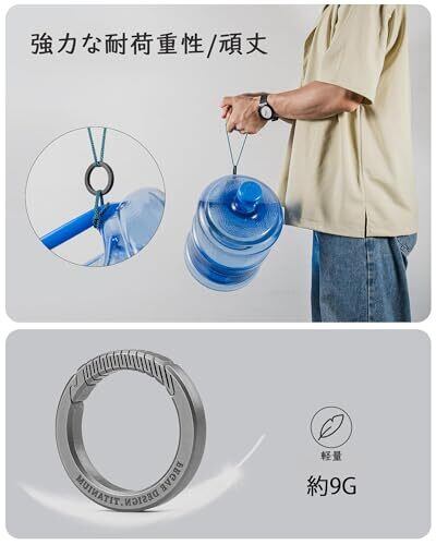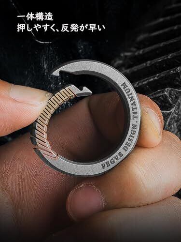 [高品質なチタン素材]「軽量」で「高い強度」を持ち、海水にさらしても「錆びにくい」特性を持つ高性能な金属チタンを使用したカラビナ・キーリングです。 [簡単に使える]高強度のため加工しにくいチタンを、高い技術で美しく加工した工業製品の造形美が楽しめます。バネを使用せず、チタンのしなやかで高弾な特性を活かしたシームレスな開口部です。開閉は片手でも簡単にできる丸いキーホルダーです。 [幅広い用途]高級感のあるデザインと機能性を兼ね揃えた丸型カラビナで、カラビナやフック、キーリングなど幅広く活用でき、おしゃれで実用的です。日常的な使用、アウトドアのバックパック、キャンプ、ハイキング、サイクリング、釣りなどに最適です。本商品はアクセサリーなどを吊り下げるためのものです。荷重のかかるクライミングや登山用には使用できません。