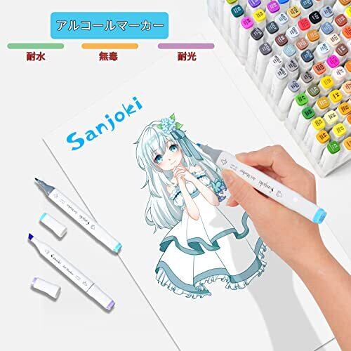 「120本アルコールマーカー」バージョン2022、2種類のペン先、高品質な染料インクを採用しています。発色が鮮やかで細かく描くことができ、定着性が強く、変色や退色も少ないです。普通の紙だけではなく、プラスチックカップや布やセラミックス、木製品などに塗ることができます。高品質のコットンコアを使用することで、よりスムーズに描くことができるようになりました。 「太細両用」太字(ブロードタイプ)は、:1-6mmのポリエステル芯。 「持ち運びに便利」付属のショルダーを取りつければ、2wayバッグとしてもお使いいただけます!折りたたみケース式で、机の上で30度折りたたむことができるので、キャップの数字が見えやすいです。 「速乾性に優れたアルコールマーカー」高品質なアルコール系のマーカーなので、時間が経っても色が薄くならず、明るく、耐水性・耐光性に優れています。インクの量が豊富なので、長くお使いいただけます。*インクが蒸発しないように、使用後はキャップを閉めてください。 「多用途」絵を描くだけではなく、様々なDIYツールとしても使用可能で、プロの方も水彩画等に使用いただけます。漫画、スケッチ、衣類、建築、プロダクトデザイン、119色のラージセットで、様々な用途にお使いいただけます。
