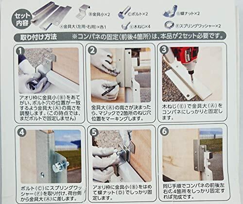 製造国:日本 内包物:金具大(左用・右用)×各1 金具小×2 ボルト×2 木ねじ×4 蝶ナット×2 スプリングワッシャー×2