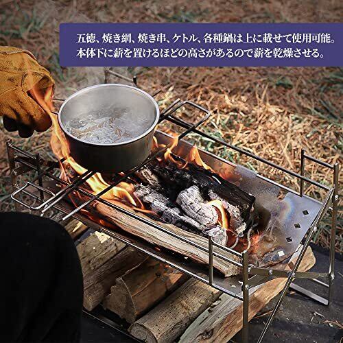 【製品仕様】本製品は耐久性に適したステンレスで作られています。展開時35.5㎝×19㎝×24.5㎝、収納時35.5㎝×30㎝×3.5㎝、本体重量990g。★実用新案登録済み実登3240240 【軽量でコンパクトな設計】わずか990gの軽量で、折り畳んで収納すると、B4サイズの大きさで、も薄く、リュックやかばんに入れて持ち運びできます。 【一瞬で開く】先ずは組み立ていらず!設営&撤収時が楽で開くだけで展開できる作りがとてもいいです、使用心地が格段に違う 【最高の安定性】従来品に比べ、キャンプファイヤーラックを組み立てる際の設置の煩わしさや不安定な置き方の欠点を解消。本体の耐荷重:約10kg 【アウトドアシーンに大活躍】キャンプ、ロングハイク、ビーチ、屋外、庭、釣り、登山などのアウトドアシーンに大活躍で、多用途によって四季を通じて焚火が気軽に楽しめます。