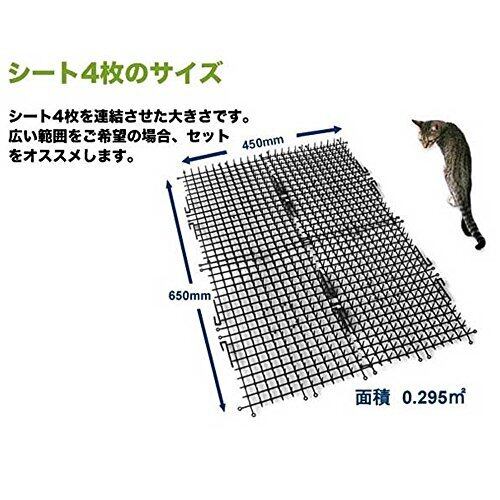 内容量:10枚入 カラー:ブラック ネコのいたずら(排泄行為)などから植物を守るネコ糞対策シートです。 幅235mm×長さ340mm×トゲ高さ18mm