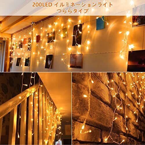 LED イルミネーションライト 200LED ストリングライト つららライト 連結可能 ベランダ アイシクルライト 8点灯パターン 記憶メモリー タイマー機能 LEDイルミネーション クリスマス飾り ツララ 氷柱 屋外 防水 庭対応 アウトドア カーテン クリスマスライト