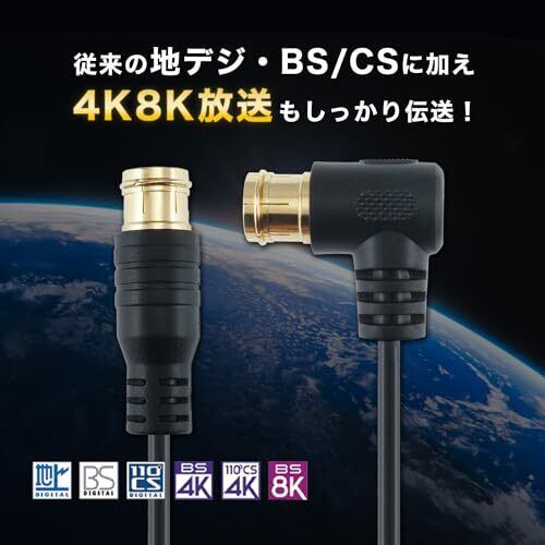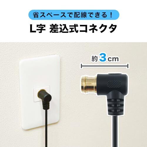 【配線しやすいL字差込式/差込式タイプ】L字差込式コネクタは、狭い隙間にあるアンテナコンセントへの接続に最適です。機器にはもう一方の差込式コネクタで手軽に接続ができます。 [コネクタ規格:F型] [コネクタ形状:L字差込式-差込式] [コネクタサイズ/L字差込式:W約14.8 x H約14.4 x D約30.2 mm] [コネクタサイズ/差込式:W約13.4 x H約13.4 x D約41.2 mm] [インピーダンス:75Ω] [ケーブル規格:S-2.5C-FB] [ケーブル直径:約3.5mm] [ケーブル長:1.5m] [4K8K衛星放送対応] [ケーブルは細く柔軟で配線が簡単] [2重シールドで信号干渉を低減] [金メッキコネクタで耐久性向上] [袋パッケージ] [保証期間:1年間]
