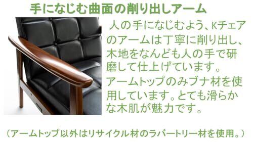カリモク60を代表するアイテム「Kチェア」のNEWモデル アームトップに木肌がなめらかなブナ材をあらたに採用 素材:アームトップ ブナ材 / フレーム ラバートリー材 張地:合成皮革 サイズ:幅64.5×奥行70×高さ70×座高37cm