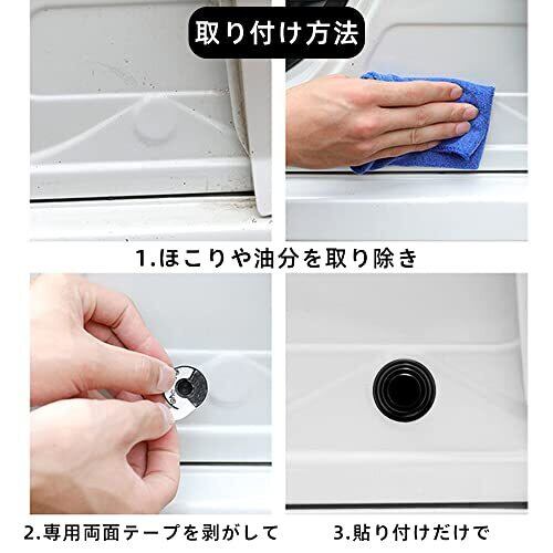 【衝撃吸収】ドア開閉時の振動を効果的に低減できます、本製品を装着された後、振動や開閉音を吸収して、騒音が減らす効果があります。 【素材】シリカゲル材質、耐摩耗性、防水性。 【優れた保護】ドアの端に小さなへこみや塗装の剥がれを避けできます、ドアを閉める騒音を減らし、車を損傷から保護できます、ドアの開閉時の振動が低減できるだけでなく、 キズ、衝撃からカードア、バックドア、エンジンルームなどの装着位置もしっかり保護します。 【取り付け方法】ほこりや油分を取り除き、製品の専用両面テープを剥がして、貼り付けだけでの簡単操作、車のフロントバンパーとリアバンパー、および各ドアの側面位置に取り付けることができます。 【パッケージ内容】20枚セット、車ドア遮音ショックアブソーバー カラー:黒色