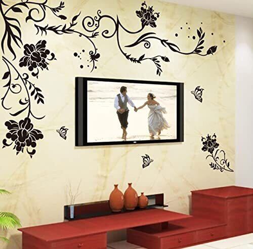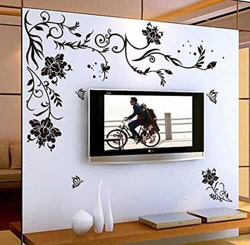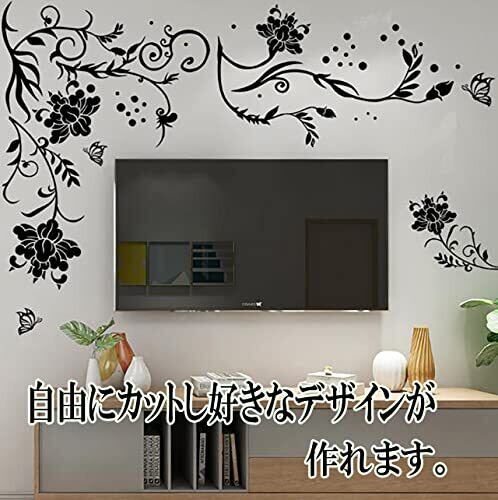 ウォールステッカー 壁紙 シール 花 シンプル 黒 ガラス 蝶々 インテリア 装飾 剝せる 90x60 (花)