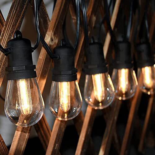 ストリングライト 屋外 防雨型 延長コード スイッチ付き 14.8m LED電球 16個 電球色相当 PC素材 破損しにくい 連結可能 パーティー電飾 ガーデンライト 結婚式 誕生日 庭 祭り 商店街