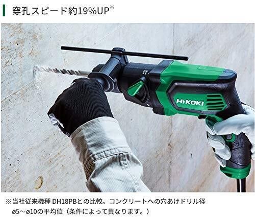 HiKOKI(ハイコーキ) ロータリーハンマードリル AC100V SDSプラスシャンク コンクリート18mm 小型軽量タイプ 穴あけ速度上昇 DH18PG グリーン