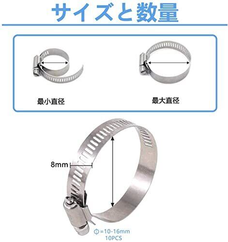 エプダ店 ステンレス鋼 調整可能 ホースクランプ 配管用燃料ラインクランプ、 自動車および機械用途 ホースバンド 10個入り (10-16mm)