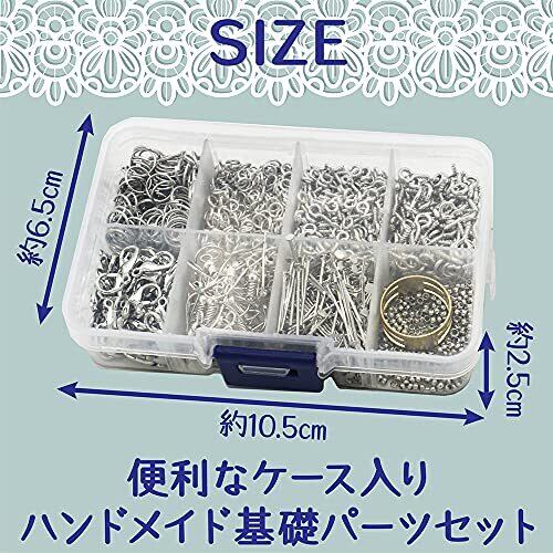 ハンドメイド アクセサリー 基礎パーツセット 8種 約1630個 カニカン ヒートン 留め金具 (プラチナカラー)