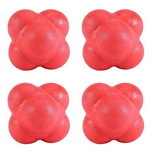 【リアクションボール】バウンドが予測できないリアクションボール4個セットです!6個の凸部分があるため、バウンドする際にどの方向に跳ねるかわかりません。 【子供にも大人にも】幼児や子供、大人にも使用可能なボールです。幼児や子供はどこに跳ねるかわからないため、楽しく遊べます!大人はトレーニングの一環としてご利用いただけます!動体視力、反射神経などを鍛えることができます。 【各種スポーツに】テニス、野球、サッカー、バスケ、バレーなど様々なスポーツのトレーニングとして、ご利用いただけます!練習の一つとしてお試しください。 【弾力性】ゴム製なので弾力性のあるリアクションボールです。軽く投げてもしっかりと弾むので、子供でも安心です。また、汚れに強いゴム製で水洗いも可能です! 【サイズ】約7cm