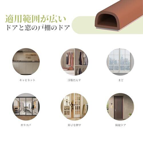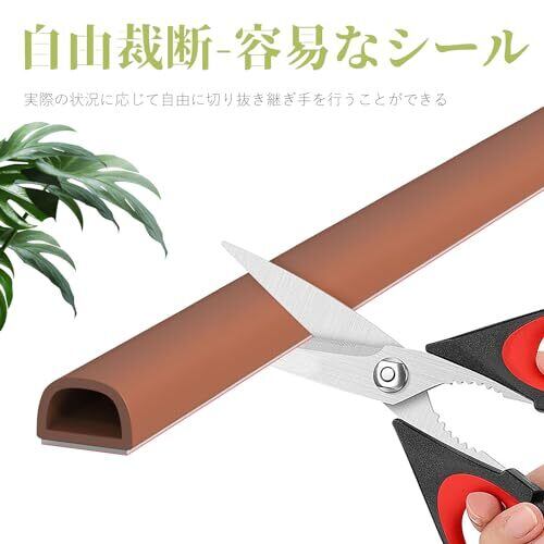 【高断熱D型隙間テープ 】D型デザイン設計とでドアと引き戸 窓に隙間を埋めて、シリカゲル材料は素晴らしい耐熱性、良い気密効果を発揮します。ドアの隙間からの音の出入りを手軽に軽減する事ができ、閉まるドアにソフトに接触し、衝撃音も吸収するつくりとなっています。隙間テープを貼ることで外部からの空気を防ぐ、室内の温度を一定に保って省エネ効果や冷暖房費の節約に。エアコンの冷暖房効率を効率をアップして、省エネ効果を発揮します。 【弾性が高い、気密性が増す】樹脂に配合することで耐衝撃性を高める性質があるため、ドアや窓のクッション材として最適です。適度な弾力ですきまにピッタリとなじみ、花粉や虫、蚊やホコリの侵入防止、省エネルギーにも効きます。 【高品質の材質】耐摩耗性、耐老化性、耐熱性、弾力性に優れた高密度シリカゲル素材で作られています。仕様カラー:ブラック、ブラウン。サイズ:9mm*8mm*6M。粘着テープ付き、必要に応じて、長さは自由に調整可能。どんな家のインテリアにも相性よく違和感がありせん。 【取り付けが簡単】シールテープは設置経験や工具を必要としません、普通の隙間テープとは異なり、本隙間テープのサイズは自由にカットできます。シールテープを取り付けるときは、まずドアと窓枠がほこりや水がないことを確認してから、シールテープの裏側にあるフィルムをはがしてドアと窓枠に貼り付けます。取り付けるときは、最高の接着効果を得るために繰り返し転がす必要があります。※(装着時、表面は清潔乾燥、無油、無塵でなければならない。) 【広い使用範囲】高い柔軟性ドアと窓の隙間テープ あらゆる種類の窓、引き戸、木戸、セキュリティドア、物置棚、キャビネットなどに使用でき。 防風、防塵、防音、花粉や虫、防寒などに使用でき、ドアや窓を効果的に保護し、優れた衝突防止および防音機能を提供し、ドアや窓を開閉する際の摩耗や騒音を低減します。