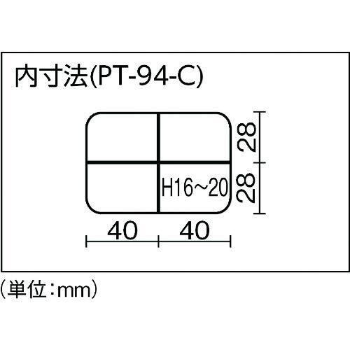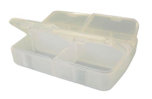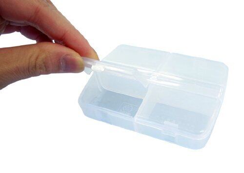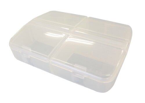 サイズ:外寸/90×67×23mm、内寸/約80(40×2)×56(28×2)×(16-20)mm 材質:コポリマー樹脂 仕様:4コマ 色:クリア