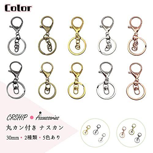 【CRSHIP】30個入り キーホルダー 金具 ナスカン ゴールド シルバー 黒 キーリング 丸カン 付き ワンタッチ 手芸用品 ハンドメイド アクセサリー 手作り 素材 DIY クラフト用品 日常 グッズ キーチェーン ナスカン セット (丸カン付き)