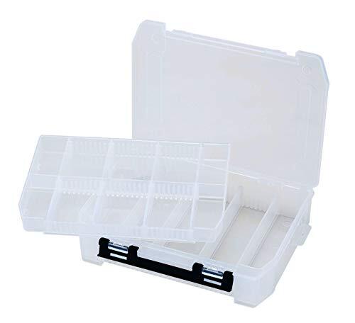 コンパクトサイズなのに大容量! 深型なのでタップリ入ります。幅255mm奥行190mm厚み60mm 日本製。平面度や端の仕上げが丁寧。 大型止具でがっちりロック! 重めの小物もしっかり収納。 縦置き収納ができるので置き場所もスッキリ! 自立できる形状です。 「バケットマウス BM-7000 (別売)」にシステム収納可能! 厚みや幅のある作業工具、部品、文具、ホビー用品の収納に便利! 中皿付きで、小型スケール・ペン・ホッチキスなどが収納可能。