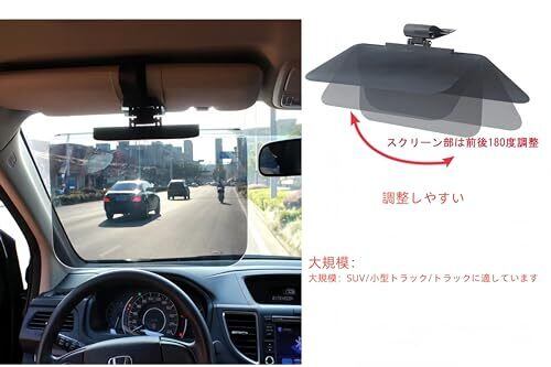 車 サンバイザー 偏光サンバイザー カーサンバイザー フロント 日よけ グレー 左右前後調整可能 360°回転 アンチグレアカーサンバイザ 紫外線 反射光 眩しさ避け 日射し 照り返しを簡単カッ大きな将軍