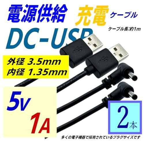DC(オス)-USB A(オス) 電源供給ケーブル DC外径3.5mm/内径1.35mm(オス) L字型プラグ 5V 2A ケーブル長:約1m (3.5*1.35 L字型 2本)