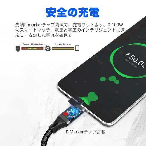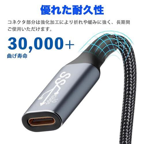 【Type C延長&10Gbpsデータ転送】USB-Cデバイス間の接続を拡張するために使用されます。スイッチ、Type-Cスマートフォン、またはラップトップなどと互換性があり、充電またはデータ同期も実現可能です。USB 3.1 Gen2、4K オーディオ/ビデオ 10Gbps信号転送と最大20V/5Aで充電します。ご注意:10Gbpsは理論上の最大転送速度ですが、実際の速度はパソコンや線材などの影響を受けますので、実際の伝送速度を基準にしてください。 【最大100W超高速充電対応】このUSB type C 延長ケーブルは短いケーブルを延長するだけでなく、充電もサポートします。最大20V/5A (100W)まで安全かつ安定して出力できます。▲PD充電を実現するために、デバイスとアダプタはPD機能をサポートする必要があります。※ご使用のデバイスにより供給スピードが異なります。 【安全な保護機能搭載】E-markerチップが搭載され、過充電、発熱などから大切な機器を守り、普通のUSBケーブルより寿命を5倍以上に向上するType C ケーブルです。サビなどに強く信号劣化を抑える金メッキピンと難燃性の素材を採用し、安全性を高めています。 【優れた耐久性】USB C - USB C 延長ケーブルは新しい編組コートを特徴としています。 ケーブルのコネクタは折れたり緩んだりしにくく、しなやかで丈夫な編組がケーブルの頑丈さを高めます。頻繁にケーブルを交換する必要はもうありません。マジックテープが付属し、収納・持ち運びが便利です。 【幅広い互換性】Type Cポート対応のスマートフォン、タブレット、ノートパソコンなどの様々なデバイスと互換性があります。カーナビやスマートフォンのミラーリング機能もサポートしています。