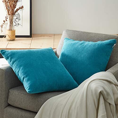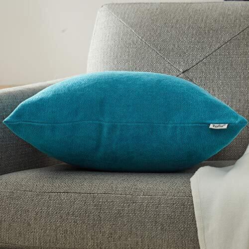 Topfinel クッションカバー リネンっぽい 45×45cm 北欧 おしゃれ 綿麻 無地 ソファ背当て 装飾枕カバー 座布団カバー ブルー 2枚セット(全10色)