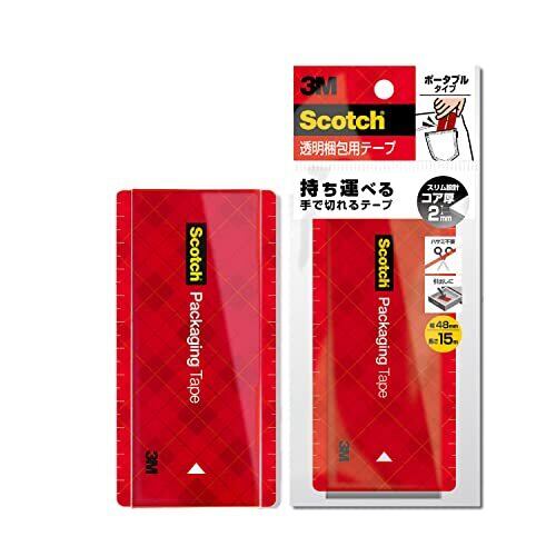 【手で切れる】 3M スコッチ ガムテープ ポケットサイズ 梱包用 手でまっすぐ切れて音が静か ポータブル 15m 3852FLT-15-RD