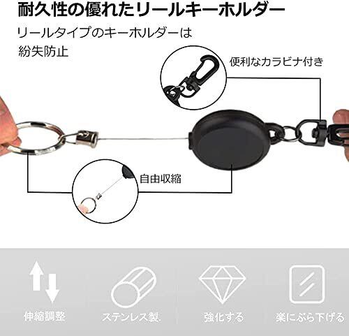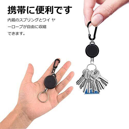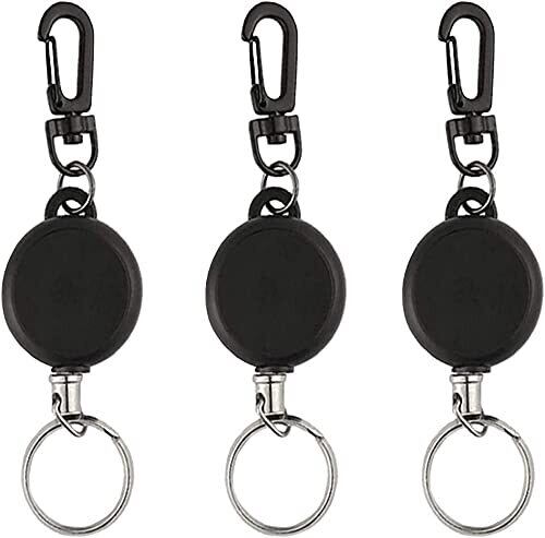 [TBDBNR] リールキーホルダー(3個セット/黒/ABS) カラビナ付 リールストラップアクセサリー 伸縮自在 紛失防止 キーホルダー 釣りのボタン ウェビングのバックル アウトドア用