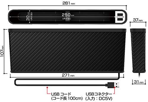 本体カラーカーボン シートの隙間に挟み込む USB充電ポート付のサイドポケット センターコンソールに貼り付けできるポケット USB充電2ポート付、USBコネクタの向きを気にせずに挿せます