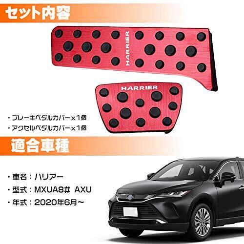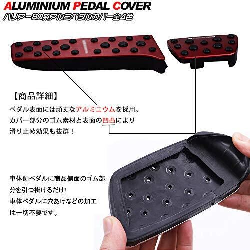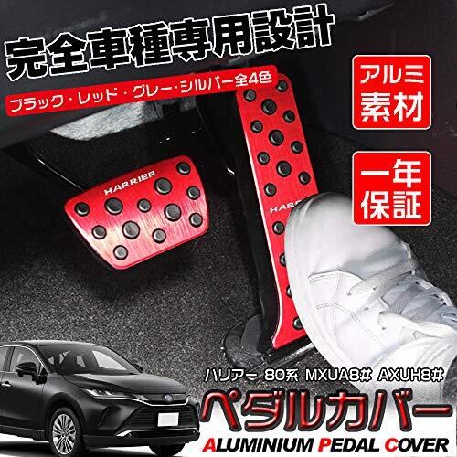 【2022年以降には取付不可】新型ハリアー 80系(2020年6月~)アルミ ペダル アクセル ブレーキ カバー 工具不要 HAIRRERロゴ付 丸い滑り止めゴム 被せる ゴム カスタムドレスアップ パーツ (レッド)