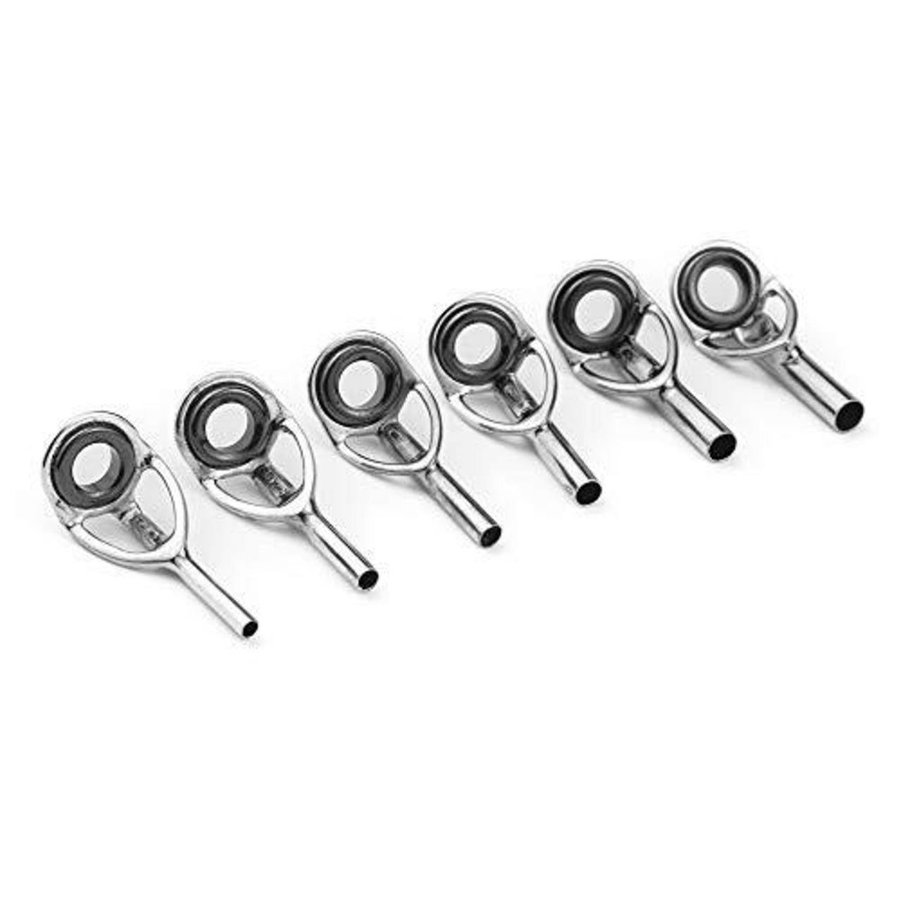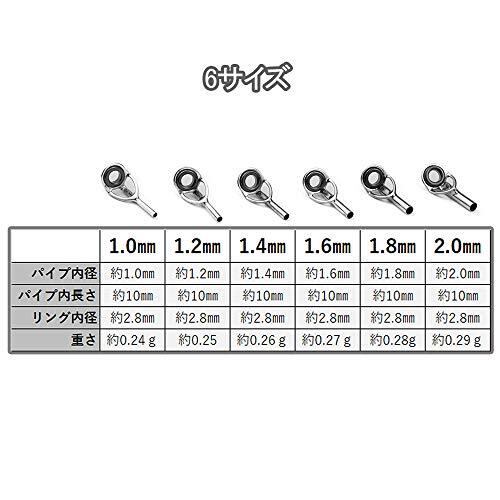 商品内容:穂先修理用トップガイド(パイプ内径1.0㎜/1.2㎜/1.4㎜/1.6㎜/1.8㎜/2.0㎜それぞれ3個入り、合計18点セット) 素材 フレーム:ステンレス リング:セラミック 寸法の詳細について2枚目の画像をご確認ください。 異なる6サイズ揃ったトップガイドセットとなります、1セットあれば穂先の修理・交換に便利です。
