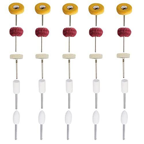 AmoYoung リューターバフ フェルトバフ&リューター繊維バフ 3種類 円筒型 砲弾型 ホイール型 鏡面研磨や金属磨き仕上げ 電動 ドリル ルーター ビット 研磨 研削 ドレメル 回転ツール アクセサリー 2.35mm軸 25個入り