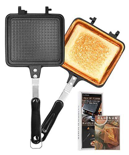 【直火ガス&IH対応】外部サイズ約35*15.6*3cm(長*幅*高さ)、内部サイズ約12.5*14cm(長*幅)、重量は約750gです;使用可能熱源:ガス直火、炭火、小型のIHヒーター(200-220Vの家庭用クッキングヒーターをサポートします)。ご家庭だけでなくキャンプなどのアウトドアや様々なシーンでご使用可能です。コンパクトで軽量なので、これからの季節、BBQ・海などのレジャーまたは、非常時の調理器具として最適です! 【圧着式&両面焼き】圧着式は、パンをしっかり囲み中身の具がはみ出しにくくなっています。耳の部分はサクッと、中央の部分はフワッと2種類の食感が楽しめます。また、具がたくさん挟めるように設計したのでボリューム満点のホットサンドをお楽しみいただけます。両面焼き、両面フラット、フライパンとして使える.わずか3-6分で焼き上がり、おかず・おつまみ・スイーツまで様々な料理が作れちゃいます。調理時間の短縮にもなるので、お子様のおやつや忙しい毎日にサッと調理します。 【収納に便利&上下分離型】この直火式ホットサンドメーカーのには、ロックと吊り下げ穴があります、ご使用後は、壁のフックにかけたり、空いた少しの隙間に収納可能。外出時もリュックなどに入れて持ち運べます。簡単に取り外して分離できるため、2枚のミニフライパンとしても利用可能。キャンプ・アウトドア用品としても活躍する調理器具。 【速い熱伝導率&お手入れ簡単】ホットサンドメーカーは、優れた熱伝導率を持つアルミニウム合金で作られています。表面はフッ素樹脂で処理されます。ハンドルはステンレス鋼とフェノール樹脂で作られており、熱伝導を防ぐことができます。フッ素加工を施し、焦げつきにくく、汚れも落ちやすくいたしました。丸洗いOKなのでご家庭の食器用洗剤と柔らかいスポンジで洗うだけです※急激な冷却はコーティングを傷め、コーティングのはがれやこげつきの原因となりますので避けてください。 【1年間のメーカー保証】包装内容:レシピの説明書*1、ホットサンドメーカー*1;CLICSUNブランドのホットサンドメーカーは、1年間のメーカー保証がついております。受け取った製品が破損している場合、または他の障害がある場合、無料で交換または返金することができます。 質問やがある場合は、いつでもお問い合わせください。