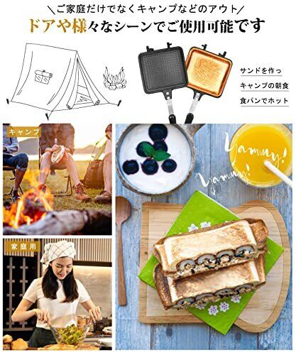 ホットサンドメーカー 直火 IH対応 ホットサンドイッチクッカー ホットサンドトースター レシピ付 両面焼き 着脱式 ロック付き フッ素加工 両面フラット キャンプ アウトドア 家庭用 耳圧着 ブラック