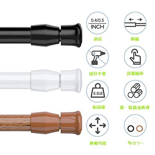 つっぱり棒 突っ張り棒 ビニール 伸縮ポール 幅60~110cm 耐荷重1kg パイプ直径1.3cm 室内 カーテンレールポール クローゼットロッド (木目調ブラウン60~110cm)