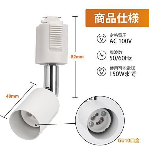 ❃【ダクトレール取り付け専用】照明器具としてダクトレールに自由に移動でき、照射角度もシーンに合わせて調整でき、自由自在な光の演出ができます。 ❃【仕様】口金:GU10、カラー:ホワイト、定格電圧:AC100V、使用可能電球:150w、可動範囲:上下約90度、回転約360度。 ❃【取り付け簡単】ダクトレールの溝に差し込んで回すだけで、簡単に取り付けられます。電球交換も簡単で、白熱電球、蛍光灯電球、LED電球など用途に合わせてお使いいただけます。(ご注意:電球は付属しておりません。) ❃【取り付け電球のご注意】ご使用の電球の首部の長さが22mm以下の場合、上部のお椀状部分が器具の外縁に引っかかり、取り付けができないことがあります。 ❃【応用範囲】リビング、ダイニング、キャビネット、会社、店舗、図書館、食卓用、商品展示用照明など、様々なシーンで活躍しています。 照明を変えたり、付け足したり、雰囲気を変えたいときに最適です。 ❃【一年保証】PSE認証済。ご購入日より一年間の保証を提供いたします。万が一商品に不良またはご不明なところなどがございましたらお気楽にご連絡ください。