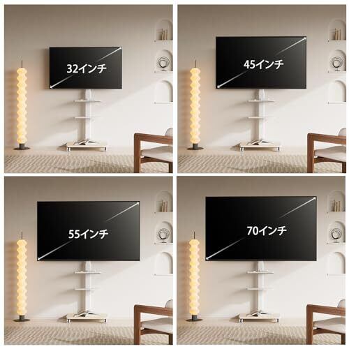 ⛄【VESA規格対応】汎用性の高いVESA規格(テレビ背面のネジ穴間の距離)対応、最小限は20×10cm、最大限は60×40cmです。当製品が32~70インチのテレビやモニター(40kg相当)に適応します。 ⛄【実用性と美観性共有】特定設計なブラケットは製品全体を魅力的で簡潔にさせます。しかも、ラックは左右に30°回転できる首振り機能も付いています。最適な角度で調整して、いろんな視角からの観賞を満たします。木目調台座はとても美しくて、お部屋の雰囲気と完璧に融合しています。 ⛄【調節機能】高さが金具と支柱の取り付け位置により、6段階の高さ(127cm~147cm)を選択して取り付けます。中段棚板は好きな位置に無階段に調節でき、レコーダーやゲーム機などスマートに設置でき、しっかりと支える安心設計です。 ⛄【移動に便利】キャスターが付きますので、一人で楽に移動でき、掃除も見る場所変更もやりやすい。また、足で操作できるストッパーを搭載しているのでしゃがむことなく、スムーズに固定できます。 ⛄【商品仕様】本体サイズ:幅65×奥行38.5×高さ127~147cm;底板サイズ:60×38.5cm(支柱まで29.5cm);重量:約11.7kg; 材質:本体/スチール 底板/木目調木製板(厚み20mm)※ディスプレイ取り付け用ネジが既にご提供されており、余計な心配には及びません。梱包と共に、日本語を含む六国語の取扱説明書が付属しており、お気軽にお組み立てできます。 FSC認証木材を使用したベース