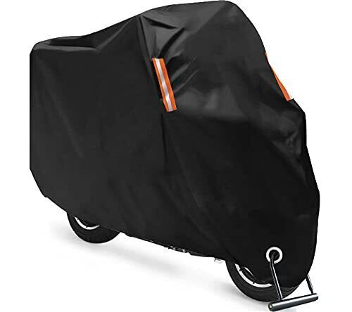 【適合サイズ】全長200cm×高さ100cm×幅90cm。 適合車種につきましては、画像内にある適合表をご覧ください。 スズキ、ホンダ、ヤマハ、カワサキ、BMW、ハーレーダビッドソンなどに対応。【ご注意】:ご注文前に必ずサイズをご確認ください。 【高品質の防水素材】オートバイカバーは、高い撥水性をもつ高級素材である420Dの高品質オックスフォード生地を使用し、縫目にはシームテープ加工を施し大幅に防水性をアップしました。 同時に、生地は紫外線、ほこり、雪、雨などを避けることもできます。 【盗難防止】前輪部分に大口径4cmの盗難防止穴を設け、本体をロックするためにU字型のロックまたはチェーンロックとカバーを使用して盗難防止に役立ちます。 生地に縫い付けられた穴と比較して、金属製の盗難防止穴は操作が簡単です。 【風飛び防止】フロントとリアの伸縮性のある裾はホイールにぴったりとフィットし、長さ調節可能な防風ベルトがバイクの中央に固定されており、ワンボタンバックルですばやく使用できます。 風の強い天候で自転車のカバーが飛びをよくに防止! 【思慮深いデザイン】2本針縫いで表面が引き締まります。 前後面に反射テープがあり、暗い環境でも簡単に識別できます。 収納バッグが付属しており、使用しないときはモーターサイクルの収納ボックスに折りたたむことができます。