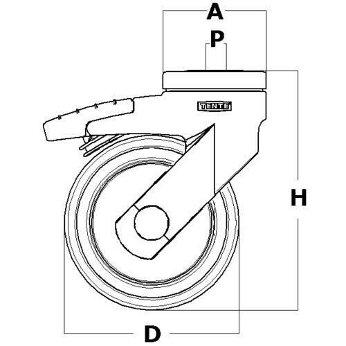 許容荷重(daN):98.0 許容荷重(kgf):100 車輪径D(mm):125 車輪幅(mm):32 取付高H(mm):161 ねじT:M12 自在式(方向ロック付)
