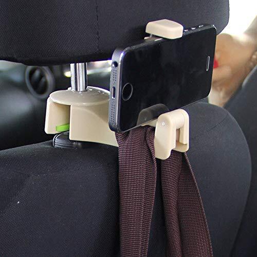 【2 in 1デザイン】携帯電話ホルダー機能付きのシートフック。愛車のヘッドレストを衣類、傘、ハンドバッグ、ショッピングバッグ、ボトル、お子様のおもちゃ、ベビー用品など様々なアイテムの収納にお使いいただけます。長時間のドライブで映画を楽しみましょう。 【安全固定】サイドオープニングと携帯電話ホルダーの裏側にはゴムがあり、滑りません。落ち防ぐ用蓋で、更に固定でき、荷物が脱落しません。最大荷重量は約5kg。 【360°回転】使用しないときは隠すことができます。内部空間、安全性、美学に影響を与えません。 【簡単取り付け】簡単で素早い取付けが可能なサイドオープニング設計を改良しました。直径0.4 "〜0.6"のポールに適した滑りにくいロータリーロックです。 【サイズ】12cm×5cm。最大荷重量は約5kg。携帯電話ホルダーの最大幅:9cm。