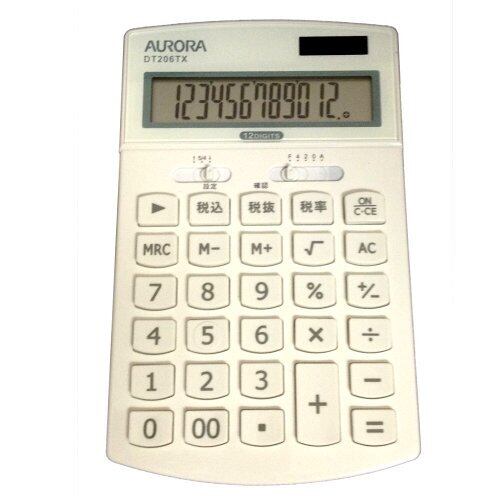 オーロラジャパン 中型卓上電卓 税計算機能付き ホワイト DT206TXW