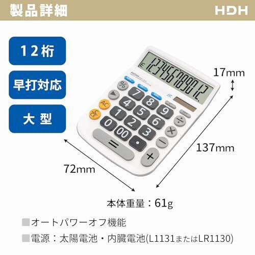 保土ヶ谷電子販売 電卓 計算機 大型 見やすい シンプル ボタンが大きい 12桁 学校 子供 計算 ホワイト HDC-Y03