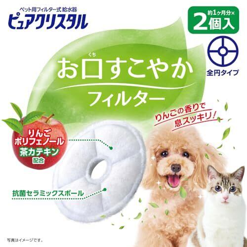 GEX ピュアクリスタル お口すこやかフィルター 全円タイプ 犬用/猫用 自動給水器用フィルター 純正品 リンゴポリフェノール&カテキン配合 抗菌セラミックボール 口臭低減 2個入