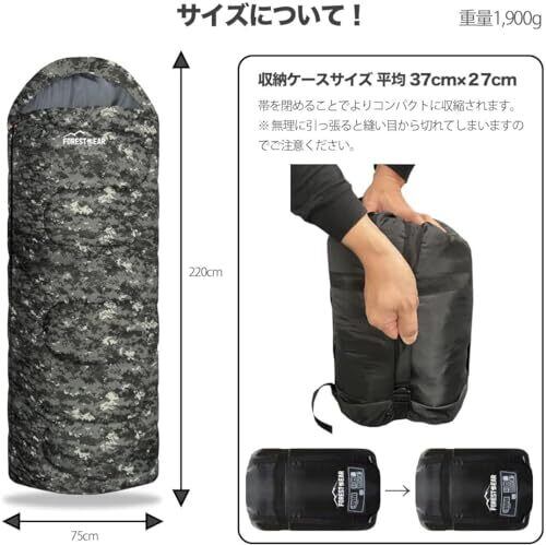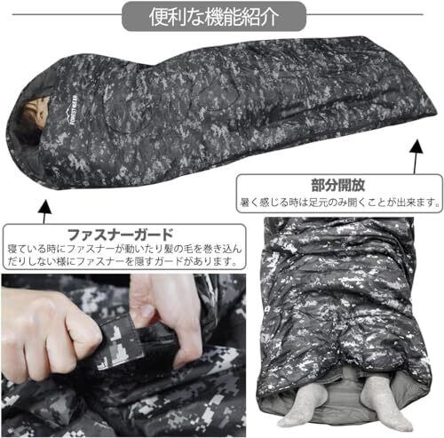 archi 寝袋 シュラフ デジタル迷彩 封筒型 車中泊 オールシーズン 冬用 コンパクト 最低使用温度 -15degree celcius (日本企業企画) (デジタル迷彩 デザート)