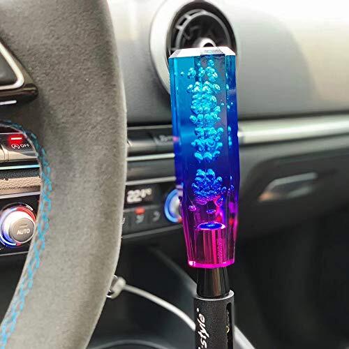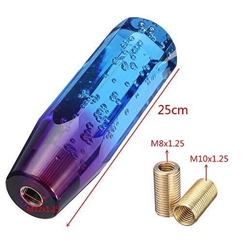 汎用 クリスタルシフトノブ 泡入り 八角 250mm バブル ゲートAT車/MT車対応 3枚アダプター付き 大半国産車対応 普通車/軽自動車/トラック ブルー+パープル(25cm)