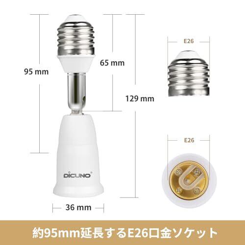 DiCUNO E26→E26 口金延長アダプター E26 延長ソケット 角度可調 約9.5CM延長する 難燃性材料PBT 4個セット