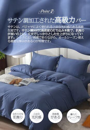 MILDLY 布団カバー シングル 3点セット オーストラリア綿100% ホテル仕様 サテン調 おしゃれ 【枕カバー2枚+掛ふとんカバー】 ヒモ8枚 柔らかい 無地 さらさら肌触り 吸汗 速乾 【3点セット・ネイビー・シングル】