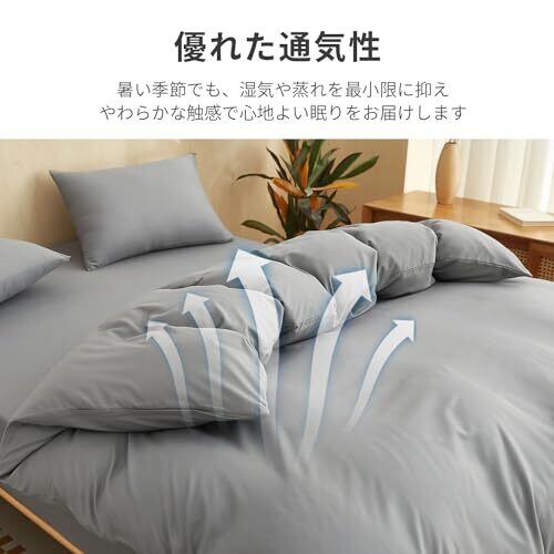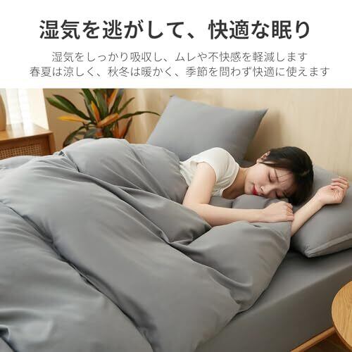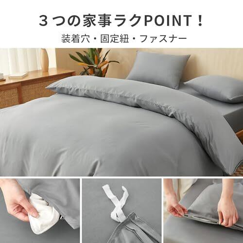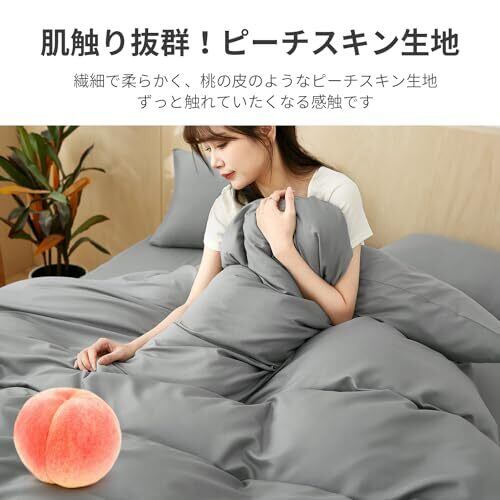 AZRA 掛け布団カバー シングル 150X210cm チャック付き おしゃれ オールシーズン ピーチスキン加工 通気 速乾 内側6ヵ所に紐付き 長辺全面ファスナータイプ 出し入れ簡単 グレー
