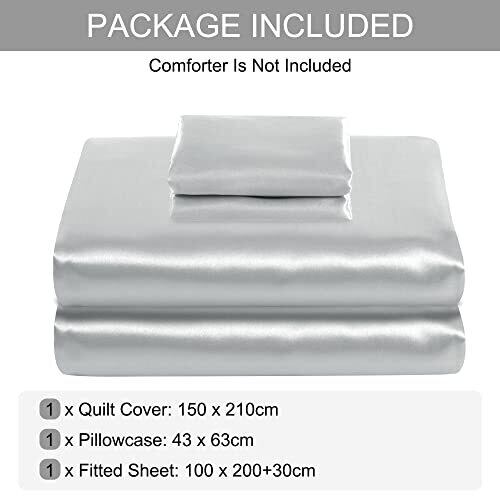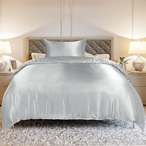 PiccoCasa 布団カバー シングル 3点セット サテン 掛け布団カバー 寝具カバーセット レーヨン素材 ツルツル 光沢 北欧風 シーツカバー 超ソフト 寝具セット シルバーグレー 100x200cm