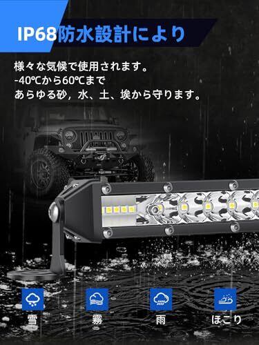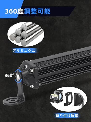 ☁【高品質】硬くて軽量なアルミ合金製で、破裂・着用が容易ではありません。自然環境では、アルミニウム合金は酸化皮膜を形成する可能性があるため、湿気の多い環境で強力な耐食性を備えています。密閉性が良いので、雨でも雪でも、あらゆる天候で使用できます。防水・防塵・耐衝撃の効果が良い。 ☁【優れた放熱性】高い素材を使用し、裏面のストライプ柄が多いので放熱面積が広がります。長期間の高温条件下でも、優れた冷却効果を発揮します。 ☁【特別なビーム】この製品は7インチのLED作業灯ライトバー です。先進のLEDチップと投光器を組み合わせたもので、高輝度を実現するとともに、ランプの反射板を内蔵しているため、光の照射角度を広げることができ、お客様に高品質の体験を提供します. ☁【簡単的な取付】本製品は、小さな取付金具やネジ、溝のデザインが豊富なため、簡単な設置と自由な角度です。 ☁【広い適用範囲】SUVやトラックのフォグランプ、自動車の荷台用の照明、フォークリフトのライト、除雪車のライト、海苔漁の常夜灯、夜釣りの照明、漁業用、農業機械用、建設機械等作業に、災害時の備えに、交通整理に、工事現場に様々な場面で活躍できます。